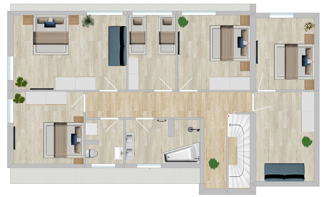 • 6 Schlafzimmer (5x Doppelbett, 2x Einzelbett)